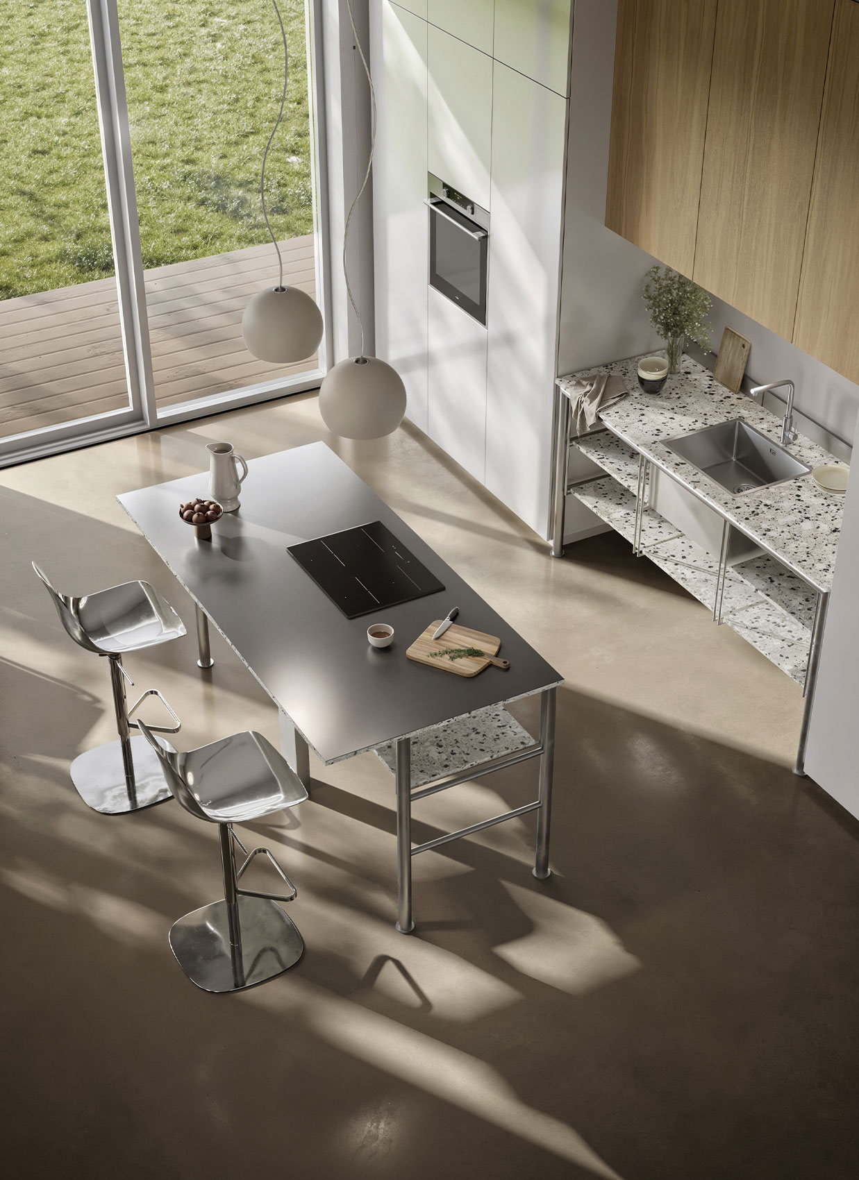 Grazie alle numerose personalizzazioni rese possibili dall’inserimento di accessori (piani di supporto, griglie appendiere, ripiani sottotop, vasche e rubinetti) ed elettrodomestici (piani di cottura a gas o induzione, piastre bbq e teppanyaki; freestanding e da incasso), Axis si adatta a ogni contesto: negli uffici e nei co-working, dove una cucina tradizionale può risultare ingombrante e poco pratica; nelle case contemporanee, dove cucina e zona giorno si fondono in un unico spazio e tutto accade nello stesso ambiente; nei ristoranti, nei laboratori gastronomici, nell’hospitality più esigente, luoghi in cui efficienza, estetica e modularità sono imprescindibili.